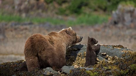 アメリカヒグマの母子, 米国 アラスカ州 (© Suzi Eszterhas/Minden Pictures)