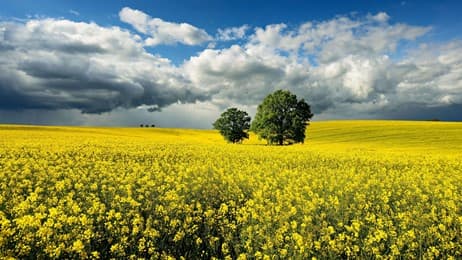 Eichen in einem Rapsfeld bei aufziehendem Gewitter, Sachsen-Anhalt (© mauritius images GmbH/Alamy Stock Photo)