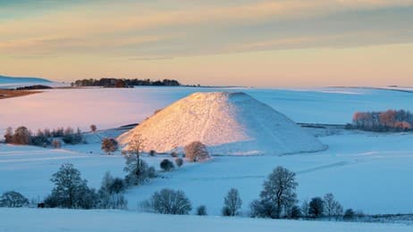 Silbury Hill in the winter snow at sunrise, Avebury, Wiltshire (© Tim Gainey/Alamy)