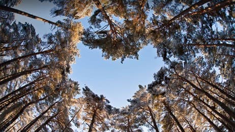 A heart-shaped opening in a canopy of Scots pines to celebrate National Tree Week (© Mark Hamblin/2020VISION/Minden Pictures)