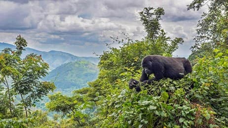 A mountain gorilla eating in a tree in the Bwindi Impenetrable National Park, Uganda (© Robert Haasmann/Minden Pictures)