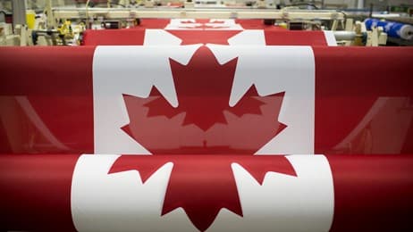 Canadian flags are printed at the Flags Unlimited facility in Barrie, Ont. (© Brent Lewin/Bloomberg via Getty Images)