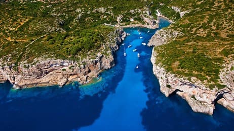 Vista aérea de la ensenada de Cales Coves, Menorca, Islas Baleares (© Gonzalo Azumendi/Getty Images)
