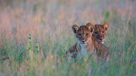 Lion cubs hiding in tall grass in the Kalahari Desert of Botswana (© Jami Tarris/Getty Images)