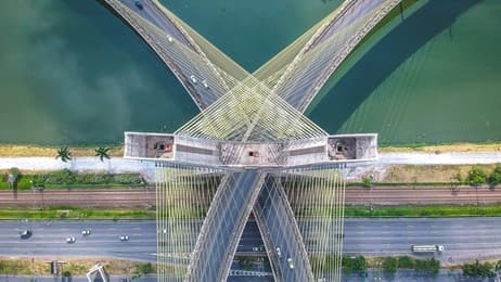 An aerial photo of a criss-crossing bridge that works well as a wallpaper on foldable and dual screen devices