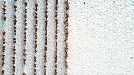 An aerial photo of snowy trees that is great as a wallpaper on dual screen and foldable devices