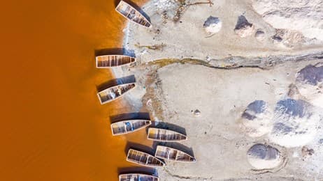 An aerial photo of boats on a beach in Senegal that works well on foldable and dual screen devices