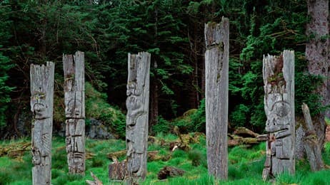 Haida totem poles on Haida Gwaii in British Columbia, Canada (© Michio Hoshino/Minden Pictures)