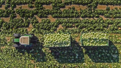 View of a tractor and trailers of cabbage in a field in Sankt Pölten, Austria (© Stephan Zirwes/Getty Images)