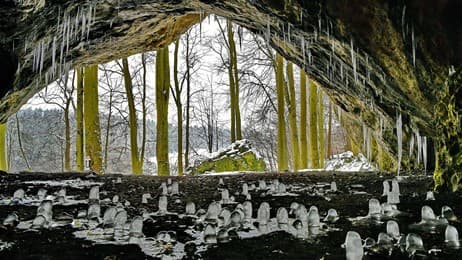 Eiszapfen in der Oswaldhöhle bei Muggendorf, Bayern (© Rüdiger Hess/geo-select FotoArt)