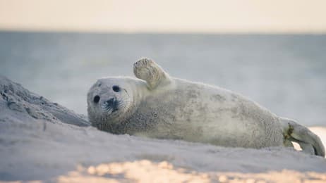 Junge Kegelrobbe am Strand der Insel Düne, Helgoland, Schleswig-Holstein (© Kerstin Bittner/Westend61/offset by shutterstock)