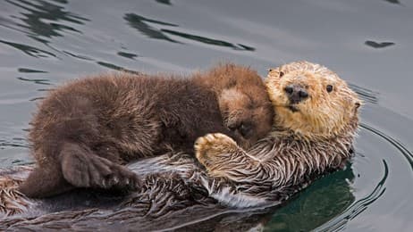「ラッコの親子」米国, カリフォルニア州 (© Suzi Eszterhas/Minden Pictures)