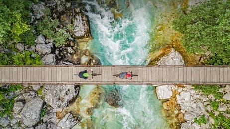 「トリグラウ国立公園ソチャ川の吊り橋」スロベニア (© Amazing Aerial Agency/Offset by Shutterstock)