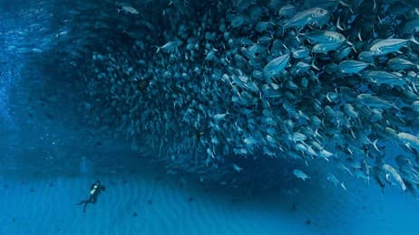 「カボプルモ国立公園のアジの群れ」メキシコ, バハ・カリフォルニア州 (© Christian Vizl/Tandem Stills + Motion)