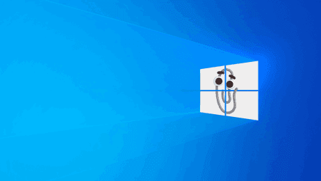 A version of the default Windows 10 wallpaper with the new Clippy emoji