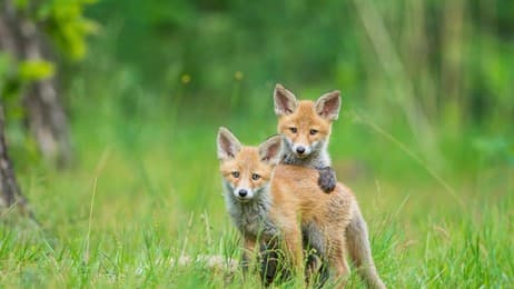 Zwei junge Rotfüchse beim Spielen, Deutschland (© Raimund Linke/Getty Images)