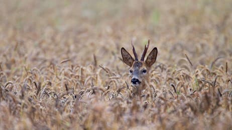 Rehbock in einem Getreidefeld zwischen den Dörfern Mehlbek und Wacken, Schleswig-Holstein (© Helge Schulz/Minden Pictures)