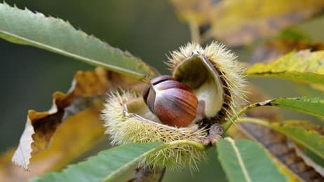 Reife Früchte einer Edelkastanie, Nordrhein-Westfalen (© Frederik/imageBROKER/Shutterstock)