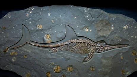 An ichthyosaur fossil of the Jurassic period, Dinosaurland Fossil Museum, Lyme Regis, Dorset, England (© Christopher Jones/Alamy)
