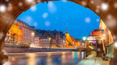 Quai et église Saint-Nicolas à Strasbourg pendant la période des fêtes (© KavalenkavaVolha/iStock/Getty Images Plus)