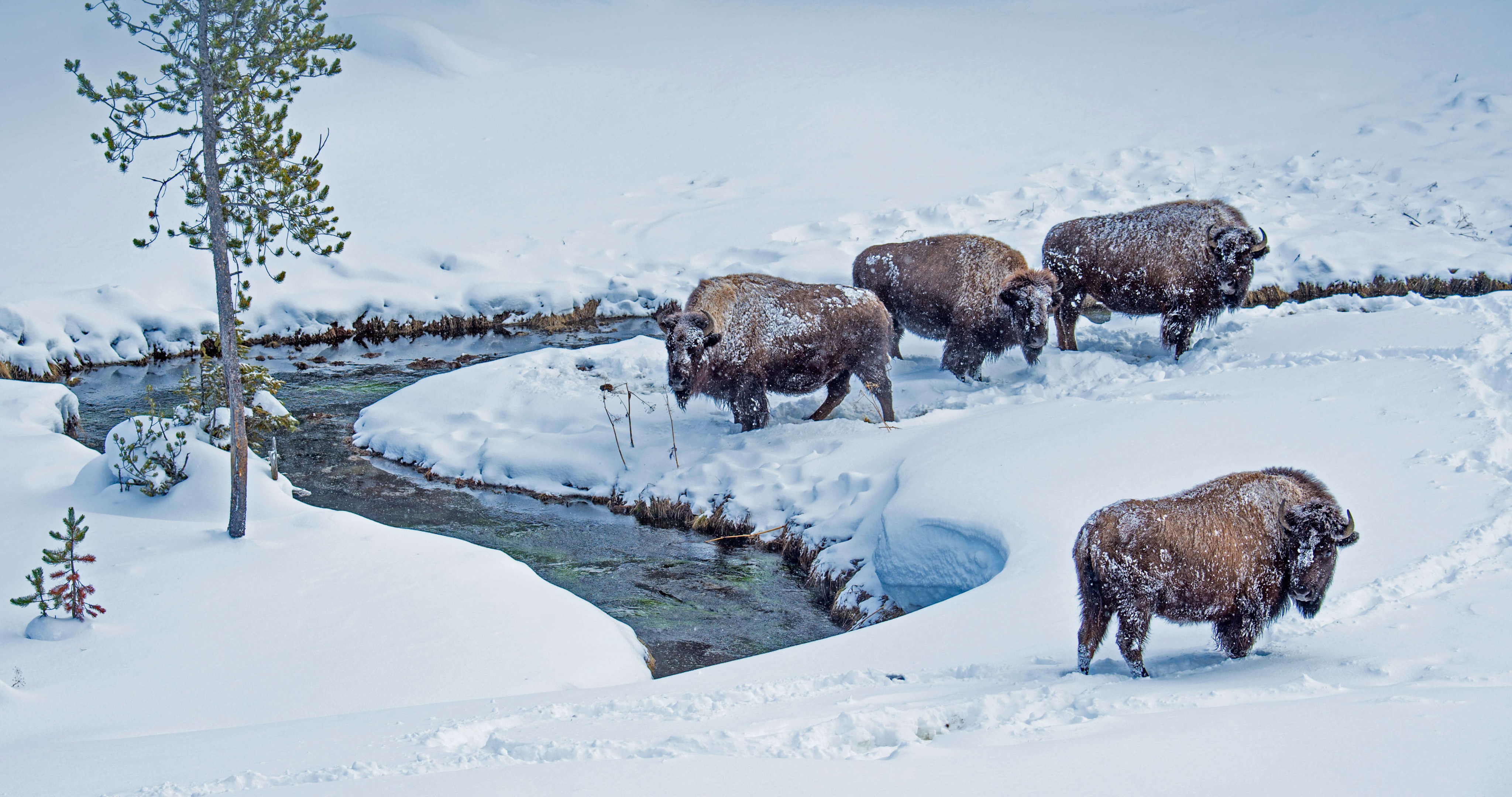 雪の中のアメリカバイソン, 米国 ワイオミング州 (© Steve Gettle/Minden Pictures)