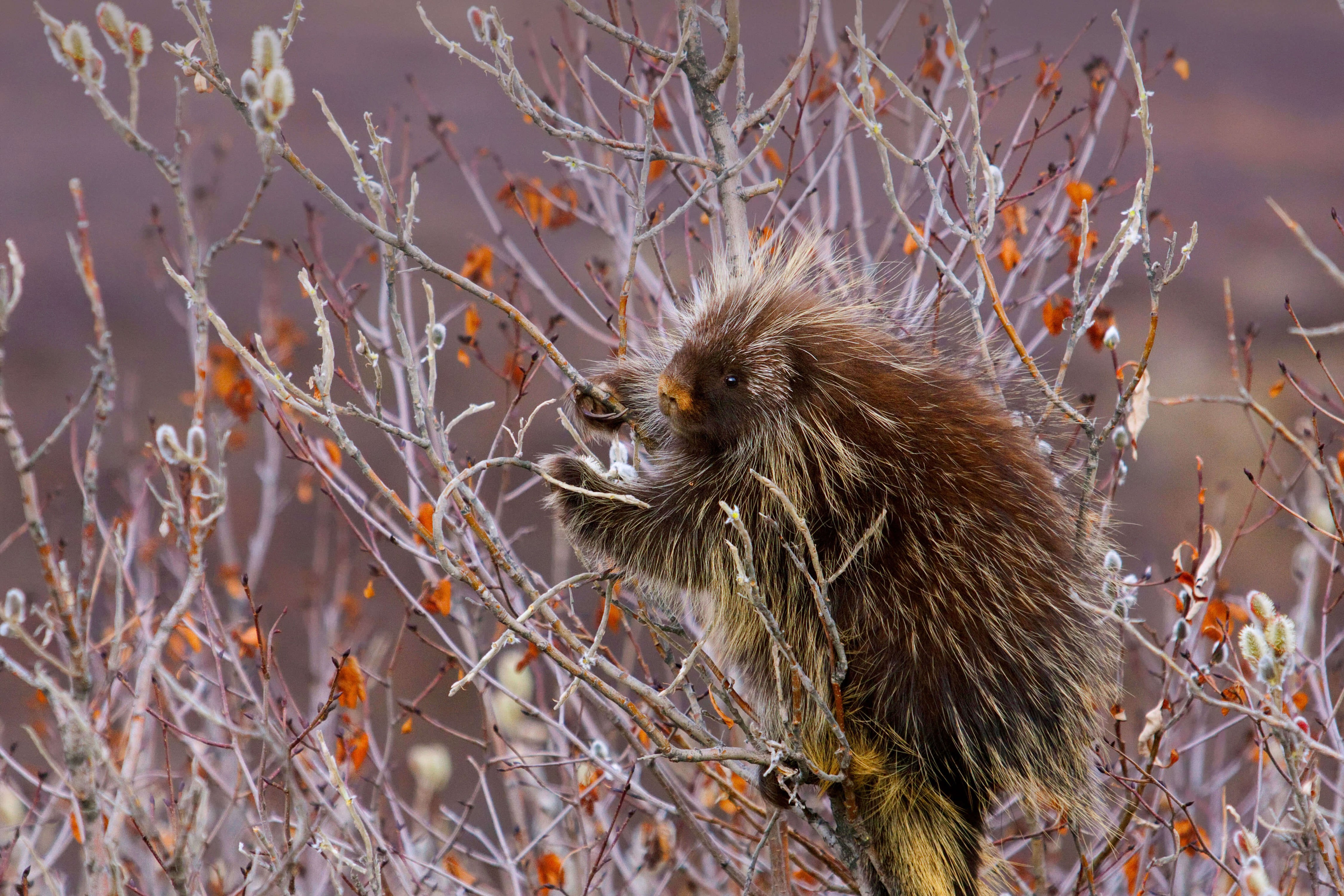 ヤナギの枝とアメリカヤマアラシ, 米国 アラスカ州 (© Design Pics/Danita Delimont)