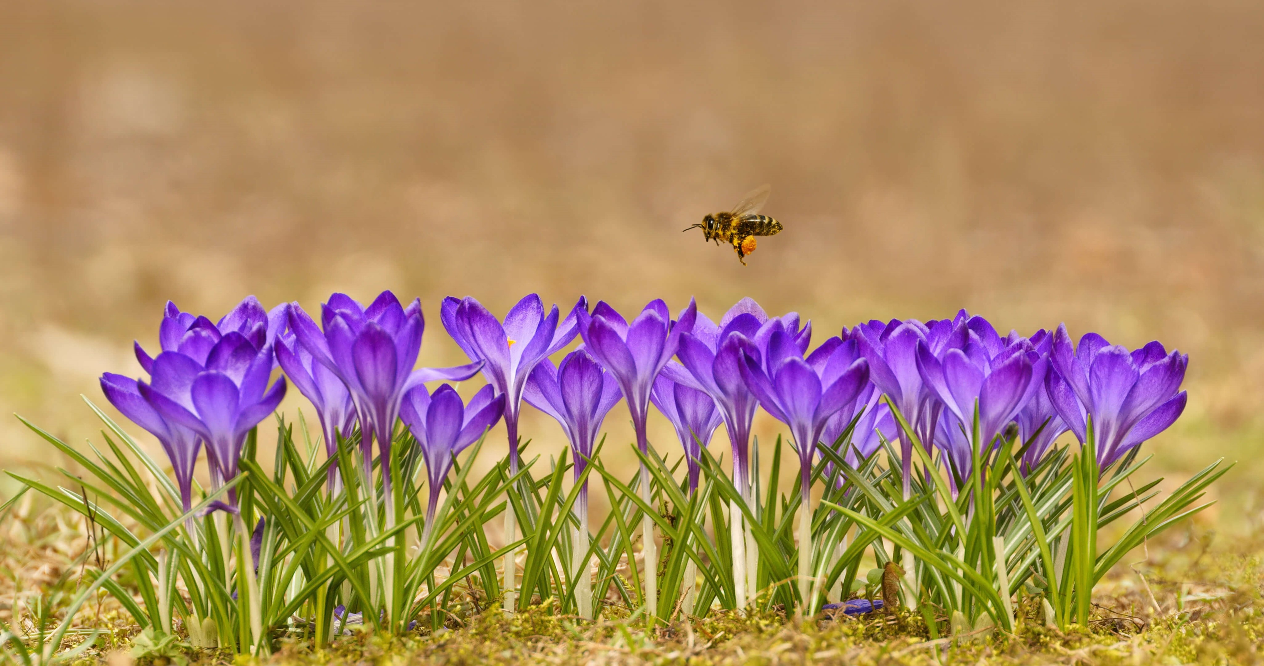 クロッカスとミツバチ, ポーランド タトラ山脈 (© MirekKijewski/Getty Images)