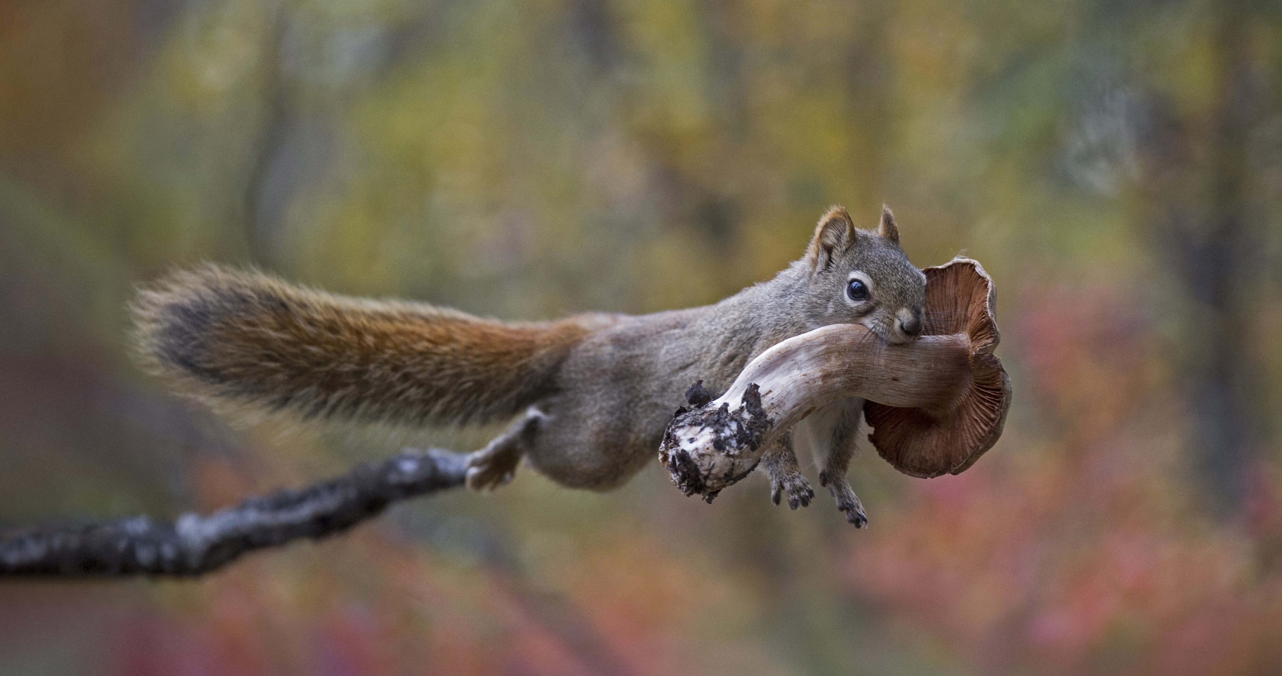 キノコを運ぶアメリカアカリス (© Michael Quinton/Minden Pictures)