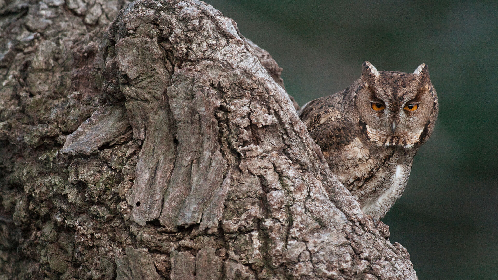 樹木に溶け込むフクロウ (© Shin Yoshino/Minden)
