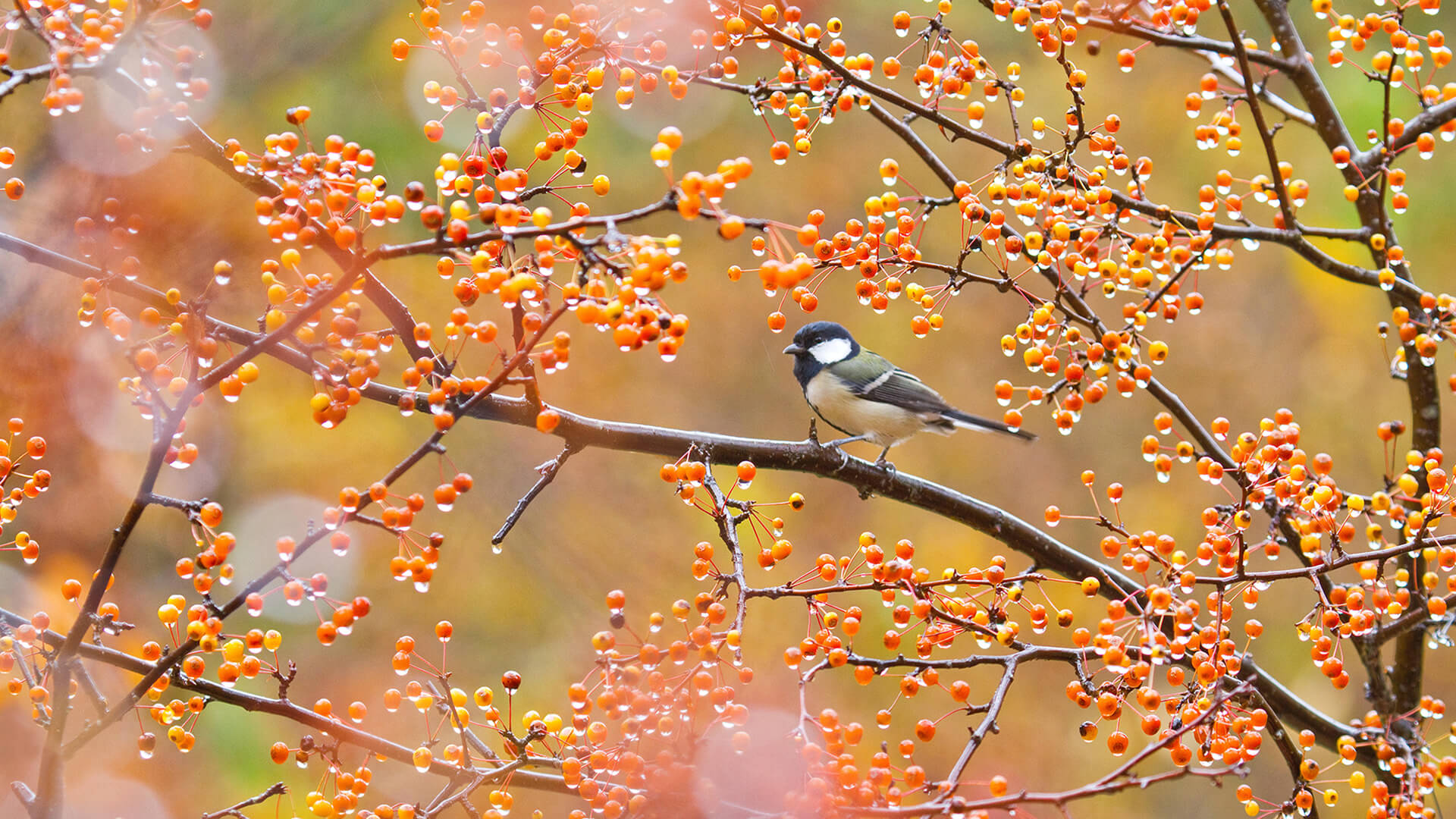 赤い実をついばむシジュウカラ (© Aflo Co., Ltd./Alamy Stock Photo)