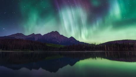 Northern lights over Patricia Lake in Jasper National Park, Alberta (© Daniel Viñé Garcia/Getty Images)