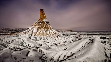 Pico Castildetierra cubierto de nieve en el Parque Natural de las Bardenas Reales, Valtierra, Navarra, España (© Martin Zalba/Getty Images)