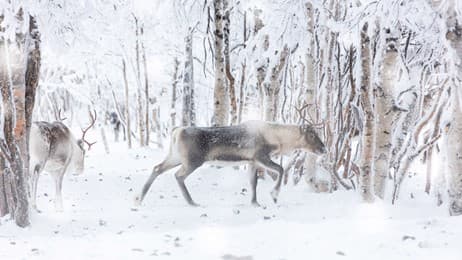Reno durante la nevada invernal, Laponia, Finlandia (© Roberto Moiola/Getty Images)