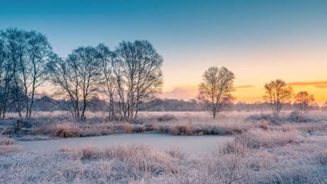 Schneebedecktes Feld bei Sonnenuntergang, Ostfriesland, Niedersachsen (© photo art/500px/Getty Images)