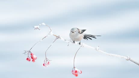 栖息在树枝上的北长尾山雀,大庆市,中国黑龙江省 (© Visual China Group/Getty Images)