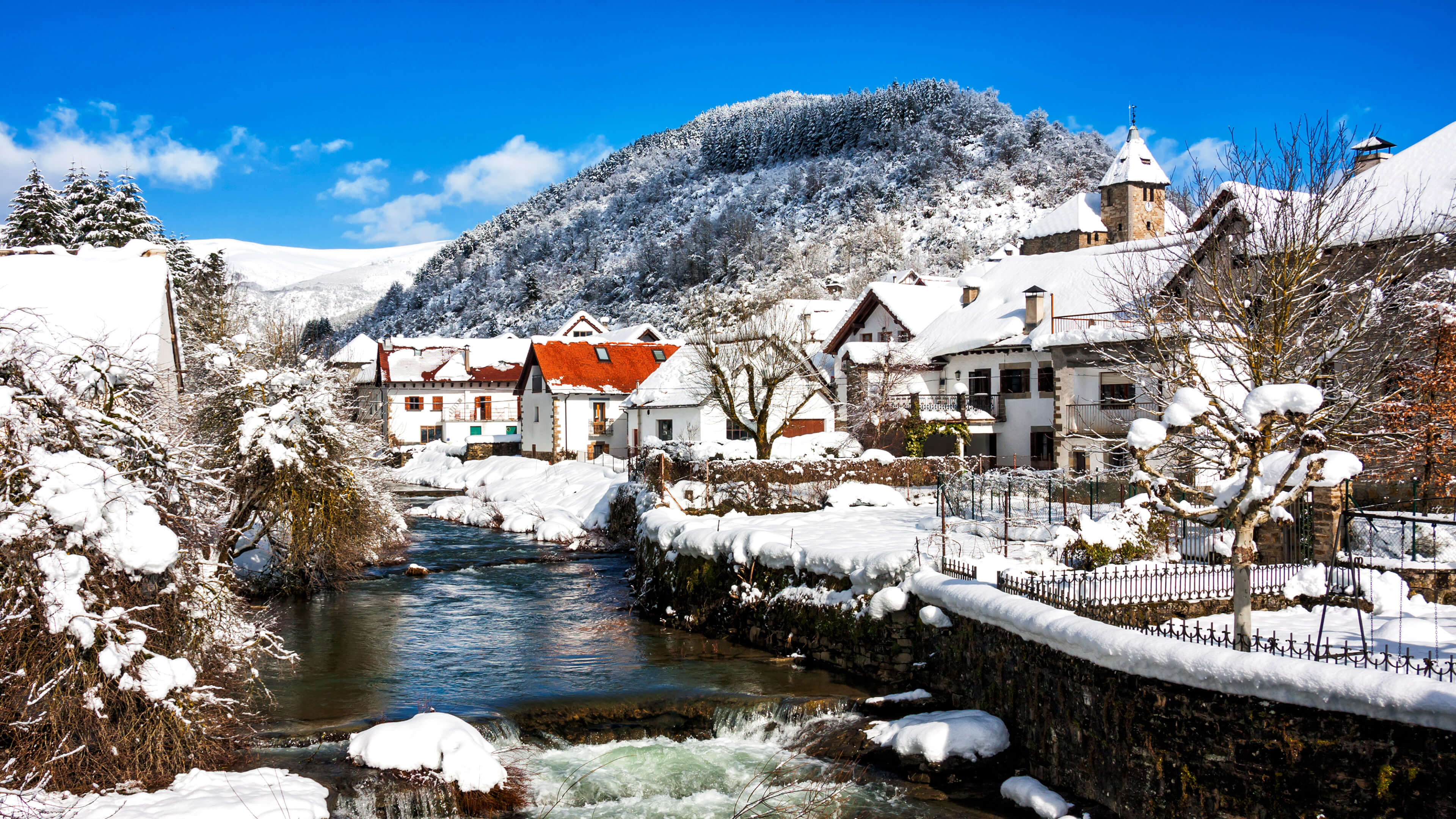 Ochagavía cubierta de nieve, Navarra, España (© PhotosTime/Getty Images)