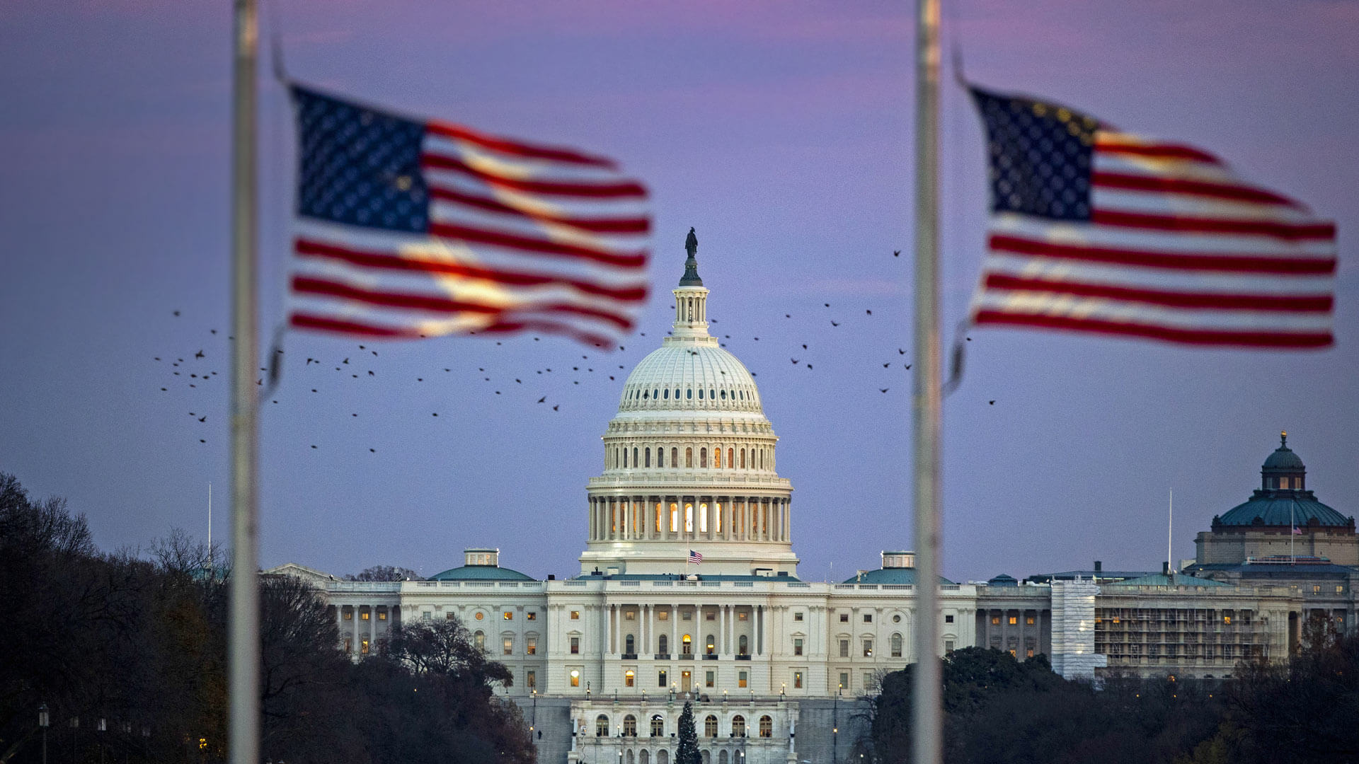 The US Capitol with flags at half-staff as former President George H.W. Bush lies in state at the Capitol rotunda, Washington, DC, on Dec 3, 2018 (© Al Drago/Bloomberg via Getty Images)
