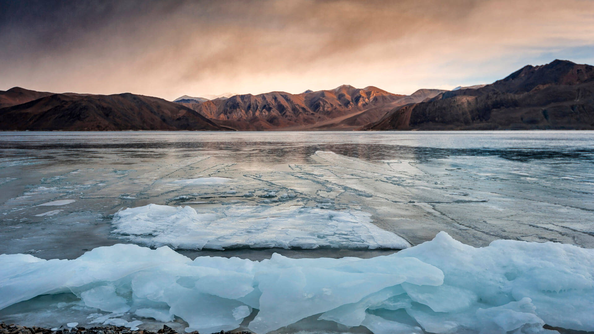Scenic view of frozen lake, Ladakh. (© Cavan Images/Getty Images)