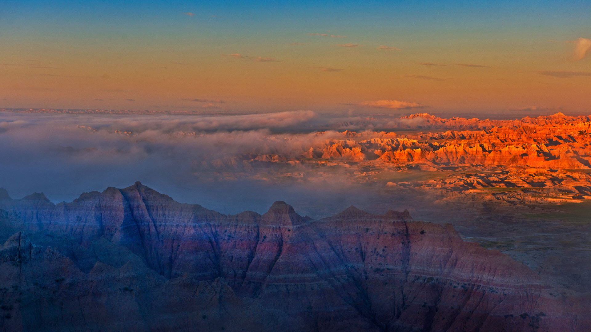 「バッドランズ国立公園の夕暮れ」米国サウスダコタ州 (© Tetra Images/Getty Images)
