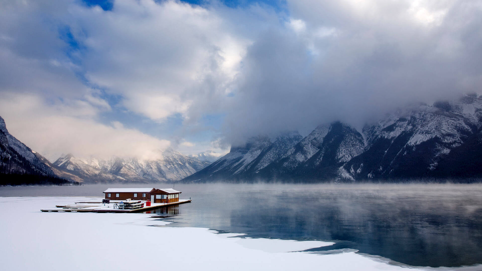Hangar à bateaux sur le lac Minnewanka, Parc national Banff, Alberta (© Wayne Simpson/All Canada Photos/Superstock)