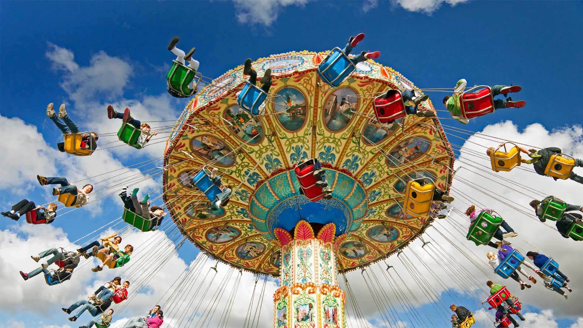 「移動遊園地の回転空中ブランコ」米国ニュージャージー州, スコッチプレーンズ (© Peter Burian/Aurora Photos)