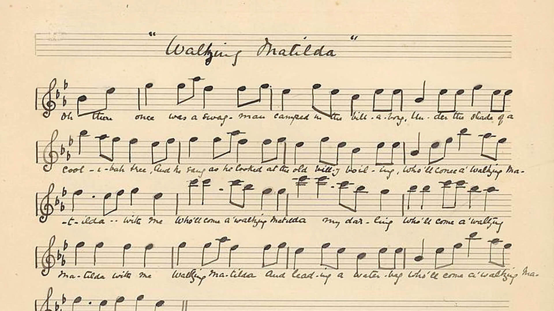 Original lyrics of Waltzing Matilda - music by Christina Rutherford Macpherson, words by Banjo Paterson (© GL Archive/Alamy Stock Photo)