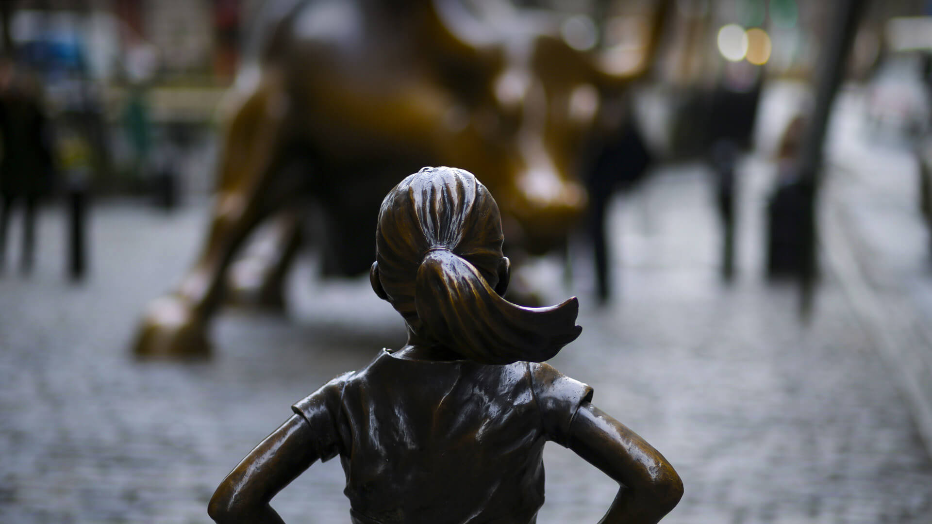 「恐れを知らぬ少女」米国ニューヨーク州, ウォール街 (© Jeenah Moon/Bloomberg via Getty Images)
