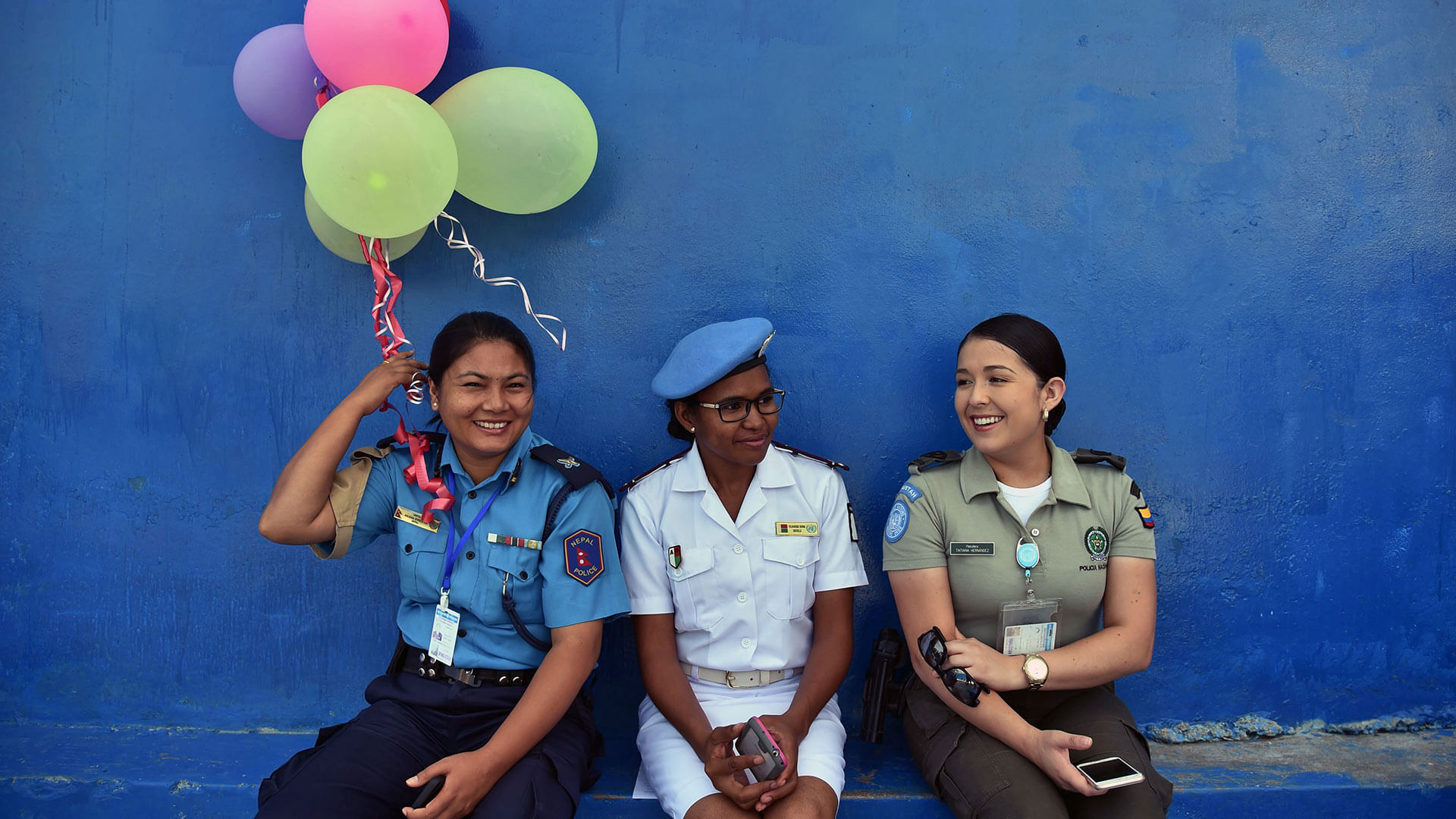 Polizistinnen der Stabilisationsmission der Vereinten Nationen in Haiti beim Besuch einer Feier zum Internationalen Frauentag im Jahr 2016 (© Hector Retamal/AFP/Getty Images)