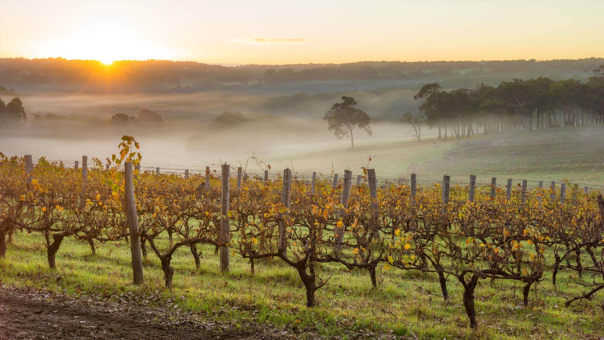 Dawn in the vineyards near Margaret River, Australia (© Nick Rains/Corbis NX/Getty Images)
