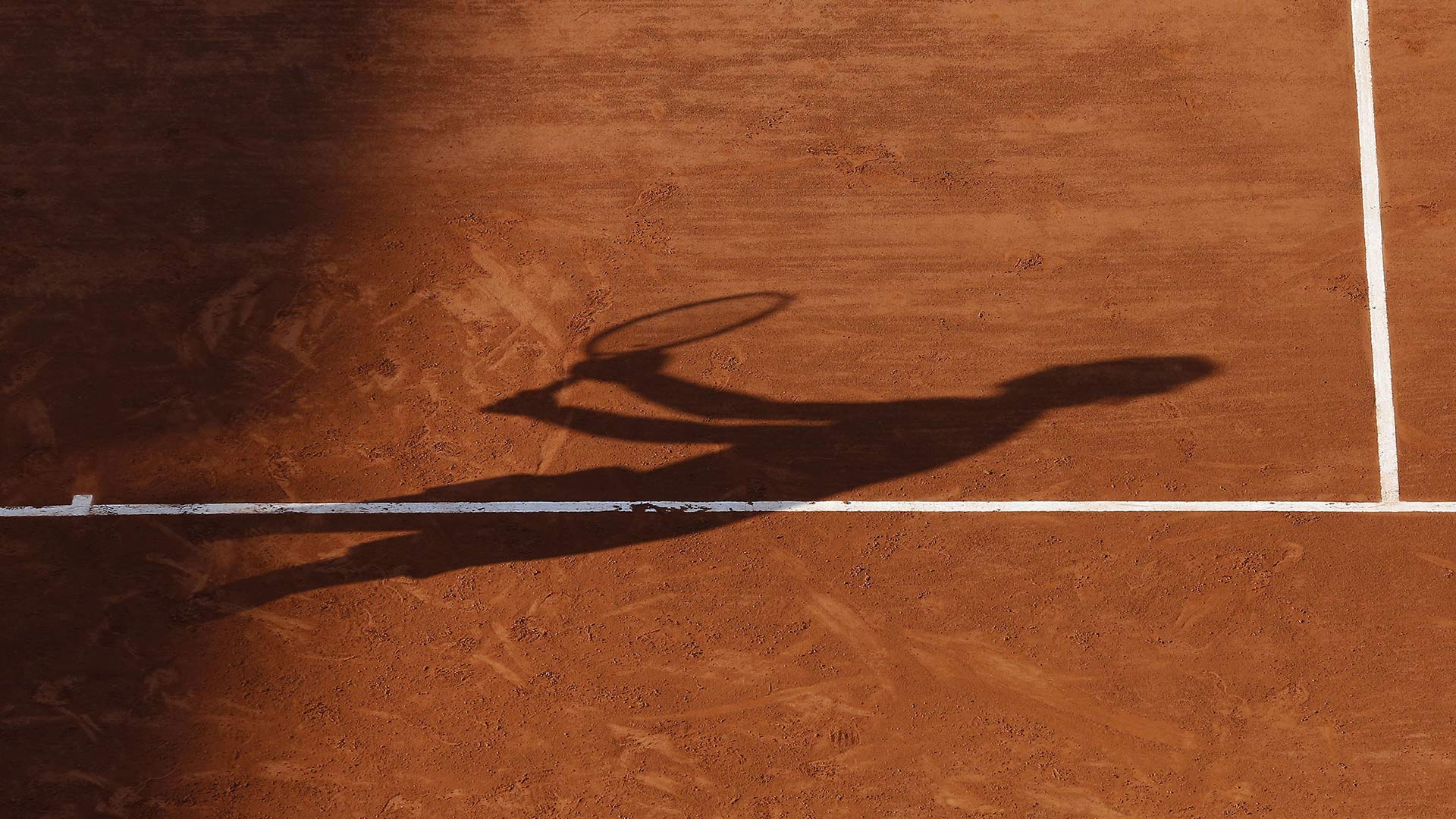 L’ombre de Rafael Nadal sur la terre battue de Roland-Garros, Bois de Boulogne, Paris, France (© AP Photo/Michel Spingler)