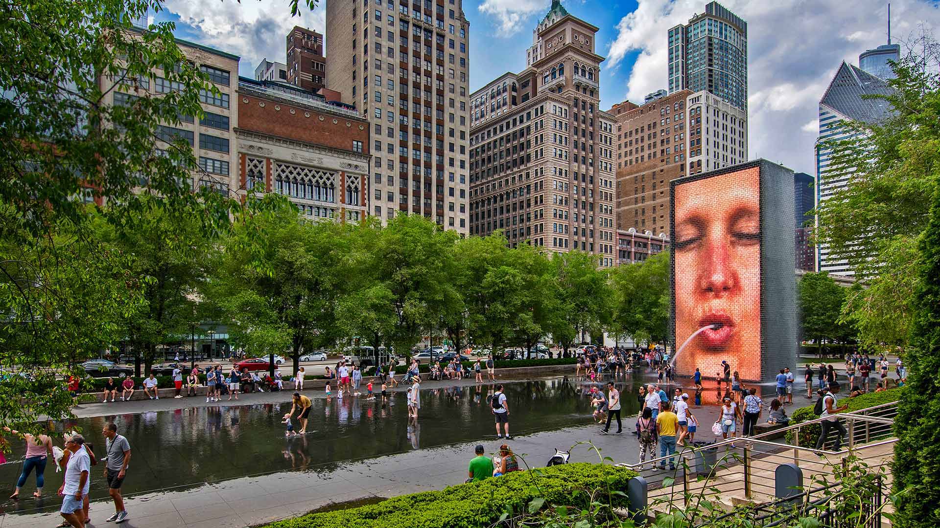 「クラウン・ファウンテン」米国イリノイ州, シカゴ (© imageBROKER/Alamy)