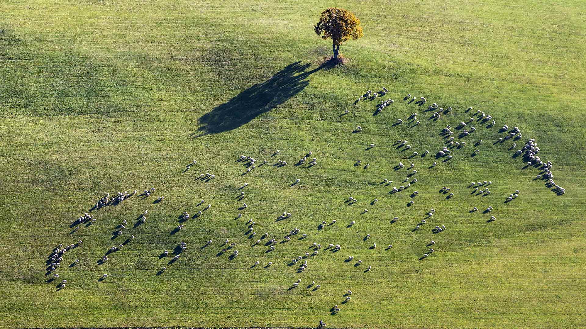 Weidende Schafherde bei Ennabeuren, Heroldstatt, Schwäbische Alb, Baden-Württemberg, Deutschland (© Arnulf Hettrich/Getty Images)