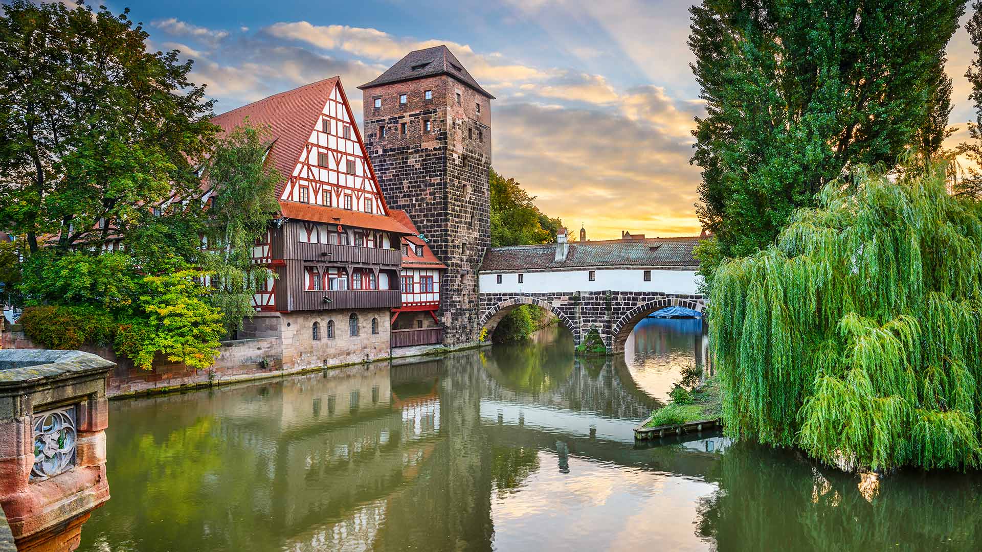 Weinstadel und Wasserturm am Ufer der Pegnitz, Nürnberg, Bayern, Deutschland (© SeanPavonePhoto/Getty Images)