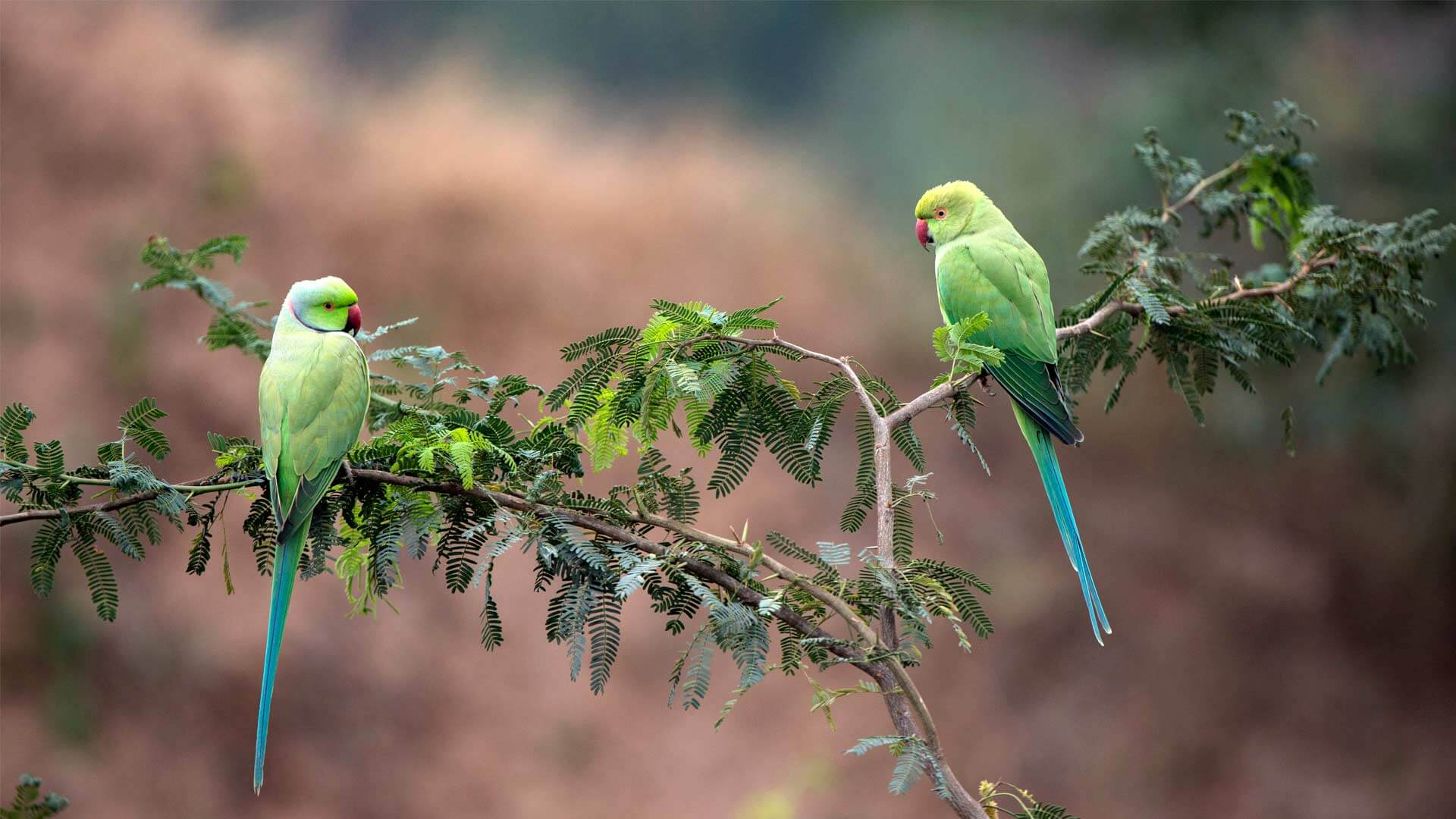 Rose-ringed parakeets (Psittacula krameri manillensis) in the National Chambal Gharial Wildlife Sanctuary, Madhya Pradesh, India (© Pete Oxford/Minden Pictures)
